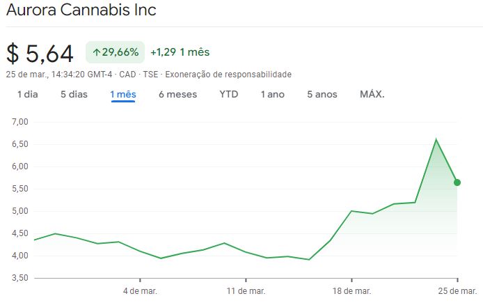 A Aurora Cannabis (ACB; Nasdaq) e Cronos Group (CRON; Nasdaq) dispararam 26,56% e 9,21%, respectivamente.