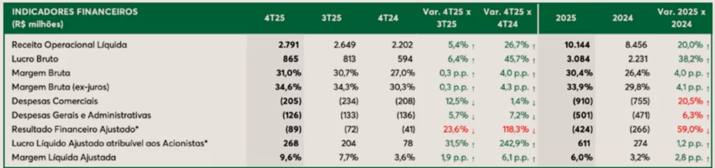 Segundo a companhia, o ano de 2025 foi marcado pela conclusão do processo de turnaround, que veio acompanhado de uma evolução dos principais indicadores financeiros e operacionais. A empresa reportou que foi possível concluir a reestruturação graças a execução disciplinada de um plano iniciado em 2023, em que foi anunciada a decisão de limitar a operação em 40 mil unidades anuais.
