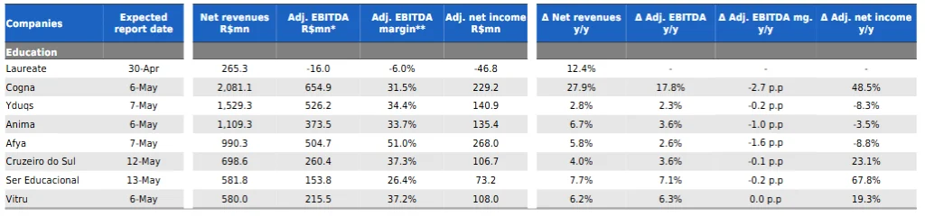 “O trimestre deve reforçar o padrão recente de crescimento de receita ainda positivo, geração de caixa resiliente e disciplina de balanço continuada”, afirmam os analistas — destacando que o primeiro trimestre é sazonalmente mais forte para o fluxo de caixa por conta do ciclo de matrículas e rematrículas.