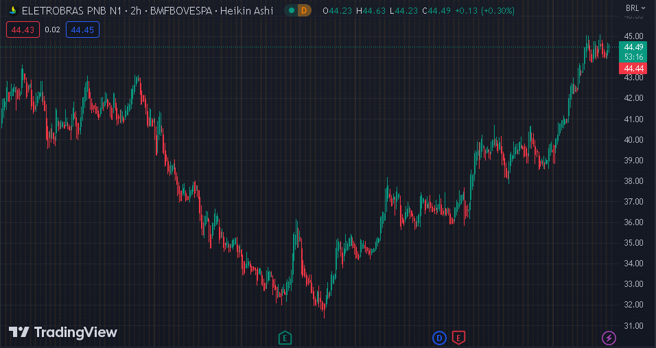 Por volta das 14h50 a ação ELET6 subia 0,50%, cotada em R$ 44,39.