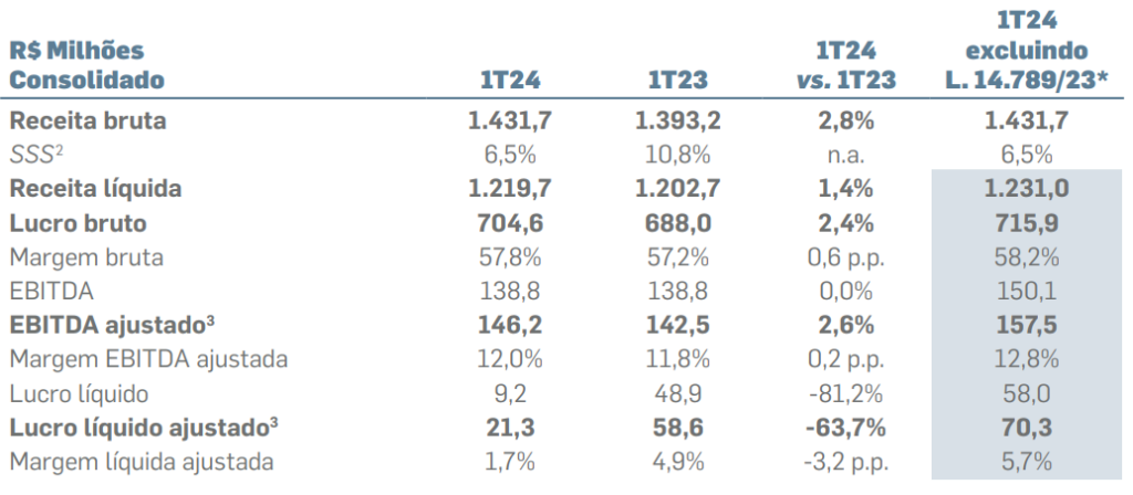 Já o ebitda da empresa alcançou R$ 138,8 milhões ante o mesmo montante do mesmo período de 2023, ficando estável nessa base de comparação.