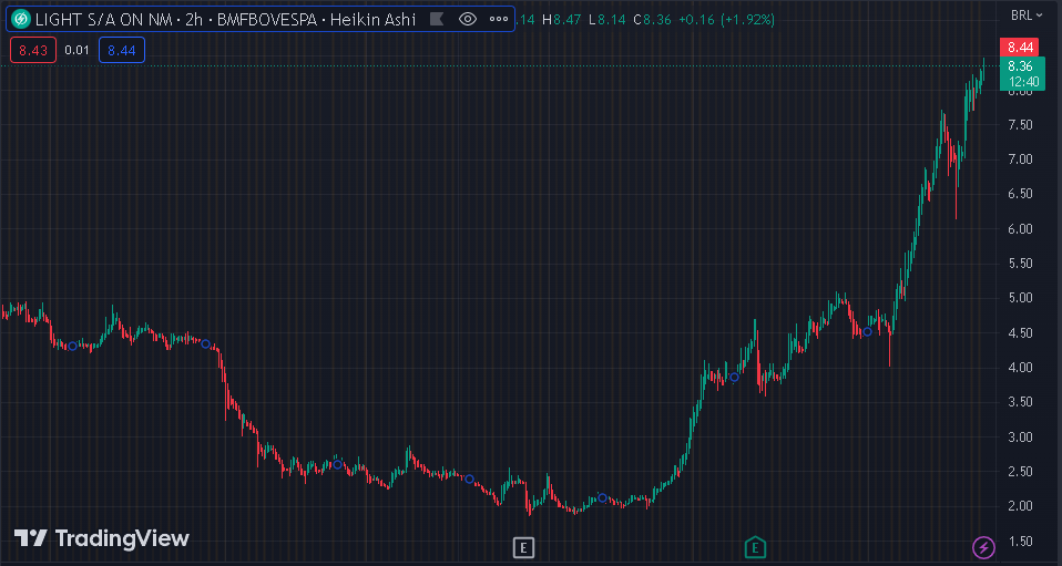 Por volta das 15h25 a ação LIGT3 subia 3,69%, cotada em R$ 8,43.