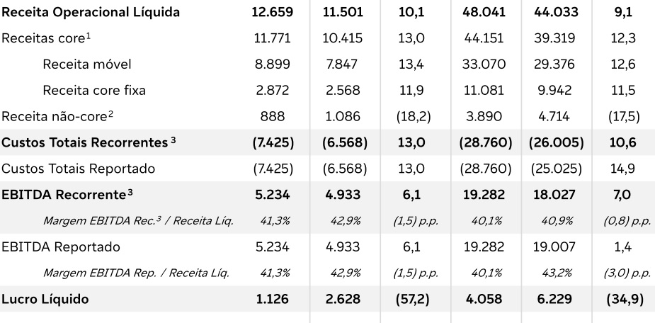 - Receita líquida 4TRI22: R$ 12,659 bilhões