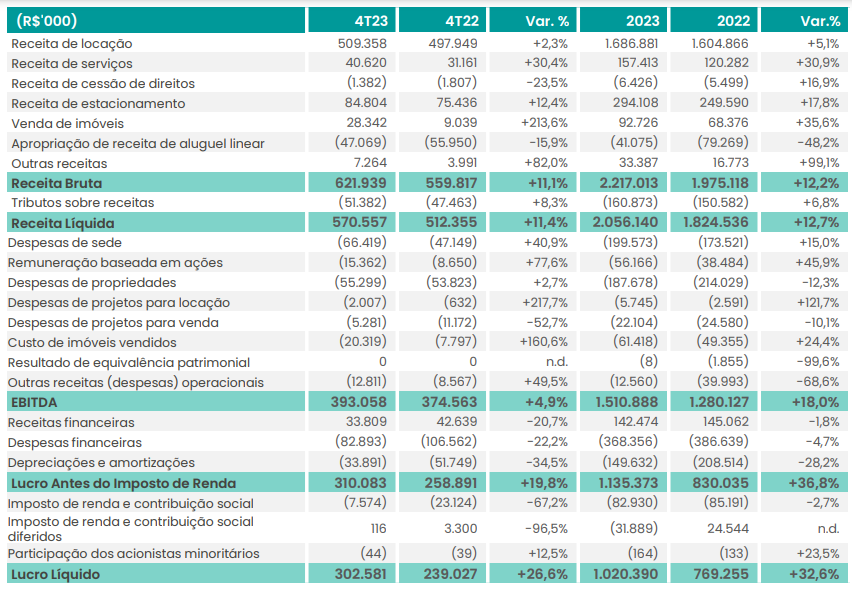 Enquanto isso, a receita líquida atingiu R$ 570,5 milhões ante R$ 512,3 milhões do último trimestre de 2022, tendo uma variação positiva de 11,1%. No acumulado do ano, a receita líquida foi de R$ 2,056 bilhões ante R$ 1,824 bilhão de 2022, tendo uma alta de 12,7%.
