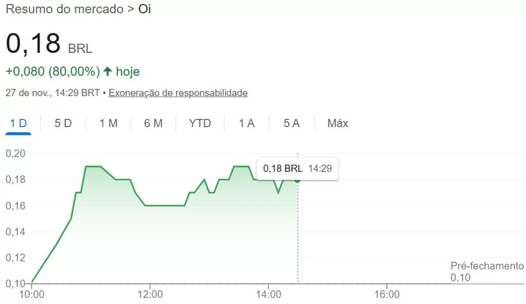 As ações da Oi (OIBR3) sobem aproximadamente 80% nesta quinta-feira (27). Mas o que pode estar por trás dessa alta intensa? Dois fatores recentes ajudam a explicar o movimento.