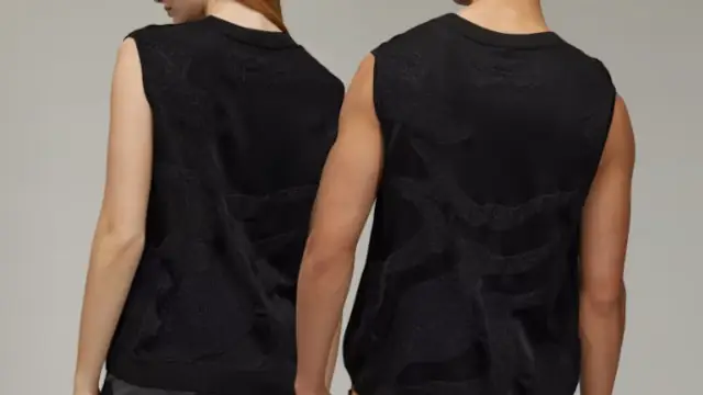A Adidas Y-3, parceria com Yohji Yamamoto, traduz essa estética com peças que misturam performance e design conceitual, longe do óbvio esportivo.