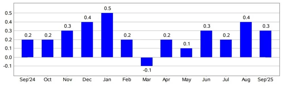 O chamado “núcleo” do CPI, que exclui itens voláteis como energia e alimentos, subiu 0,2% em setembro, ante 0,3% esperados. Nos últimos 12 meses, o núcleo acumula variação de 3%, mostrando uma trajetória estável em relação a meses anteriores.