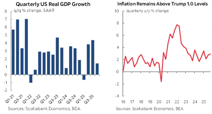 Um dos pontos mais críticos da análise envolve a checagem de fatos sobre a economia. O Scotiabank contesta a narrativa de Trump sobre a revitalização de um mercado supostamente estagnado antes de sua gestão. Conforme o relatório, “o gráfico mostra que a afirmação de que Trump ressuscitou uma economia americana de baixo desempenho não é verdadeira; o crescimento era sólido e menos errático antes de Trump assumir o cargo“. O banco também aponta que a inflação atual permanece superior à de seu primeiro mandato.