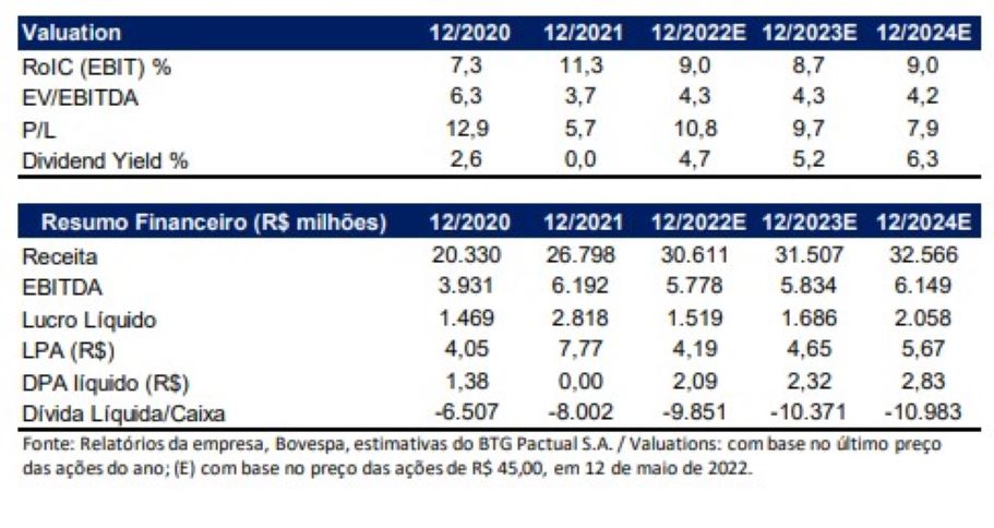 Já em outros negócios da companhia, sobretudo trading, o Ebitda totalizou R$ 16 milhões, bem abaixo da projeção do BTG (R$ 80 milhões).
