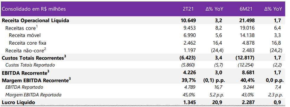 Telefônica Vivo (VIVT3): principais números do balanço do 1TRI21