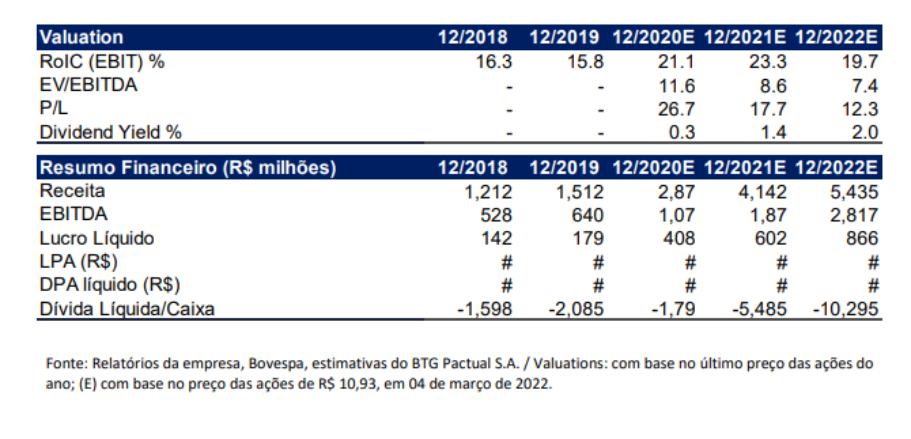 E complementou que a companhia é negociada a 17,7x Preço/Lucro em 2022 e deve crescer o LPA 45% ao ano até 2025.