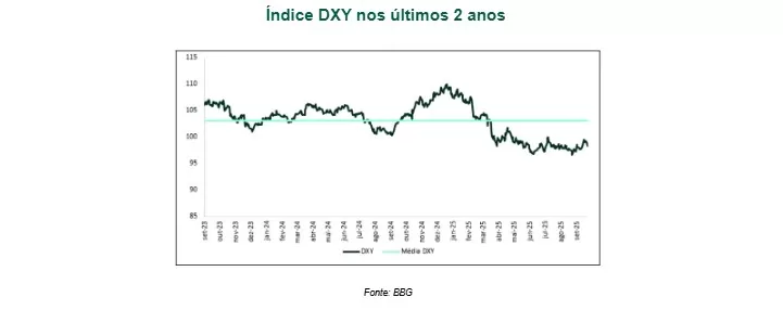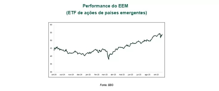 E isso levou investidores a buscarem maior exposição a ativos de países emergentes, diante das incertezas sobre a segurança institucional dos EUA e do enfraquecimento do dólar.