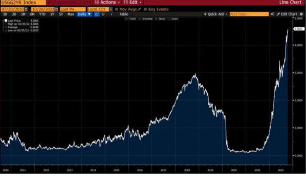 O gráfico, que parece do bitcoin, mostra a curva de 2 anos do FED