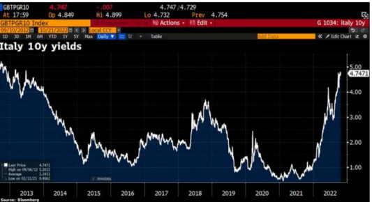 Bonds italianos de 10 anos pagando praticamente igual ao FED dos EUA, atratividade muita baixa.