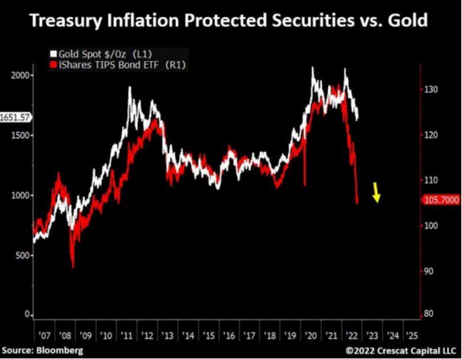 As TIPS (treasury inflation protected bonds) estão se saindo pior do que ouro como proteção contra inflação.