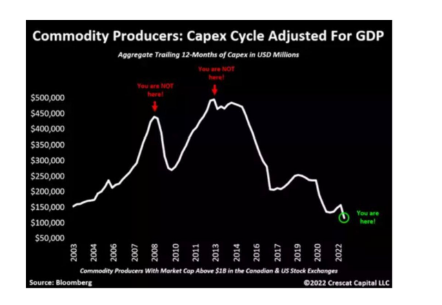 Não esquecendo que apesar da queda de atividade a frente também vemos um pico de preço de commodities concomitante a uma falta de investimento em capex no setor a quase 10 anos… restrições de oferta devem continuar afetando as cadeias de suprimento.