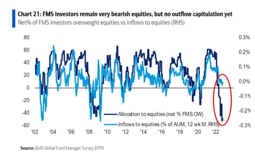 Todos continuam pessimistas, mas não vimos um fluxo saindo de ações que justifique um momento de capitulação e reversão de bear market…